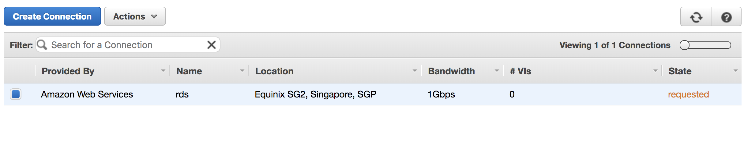 在类似的行中,我正在尝试设置AWS直接连接,该连接目前正处于请求阶段: