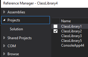 右键单击classlib项目并选择add=>reference,在project中选择您想要的工具项目如下: