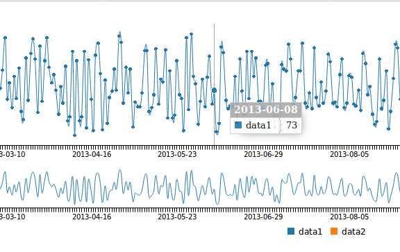它是如何工作的?标签总是生成的,但隐藏在display:none css配置中。因此,我的解决方案是始终跟踪顶部图表中可见滴答的#,当它低于某个阈值时(例如放大),然后始终显示这些隐藏标签(display:block)。