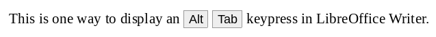 我正在编写一个描述GNOME键盘快捷键的文档,并希望使文本看起来比: ALT + TAB更好看。在这个线程中,似乎有一种常见的方法,即按钮似乎在文本中: