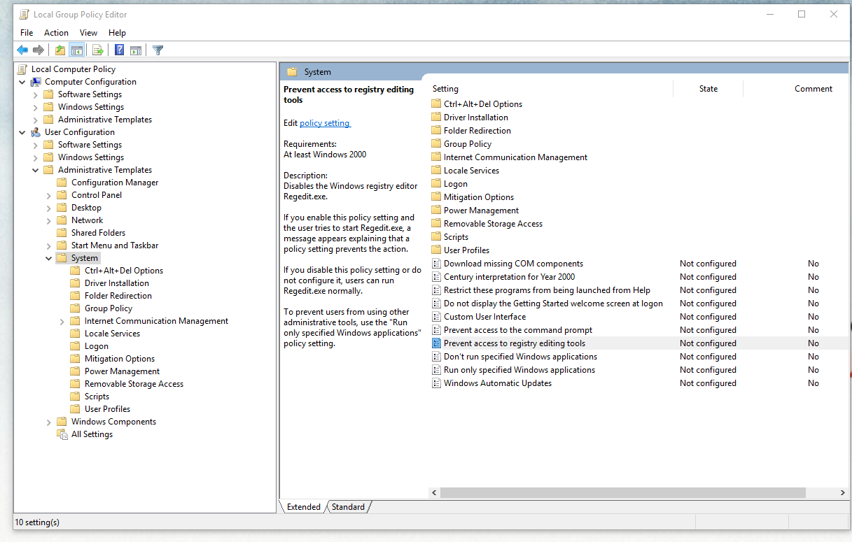 尝试使用以下步骤启用注册表编辑(假设您有Windows 10)