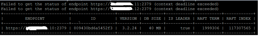 我有一个堆叠的主K8s集群(etcd也是本地/内部的),有三个主节点和9个工作节点。我的集群版本当前是1.12.3,在执行etcd命令时,我尝试列出etcd成员,执行