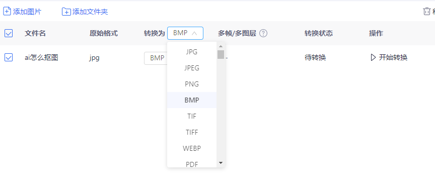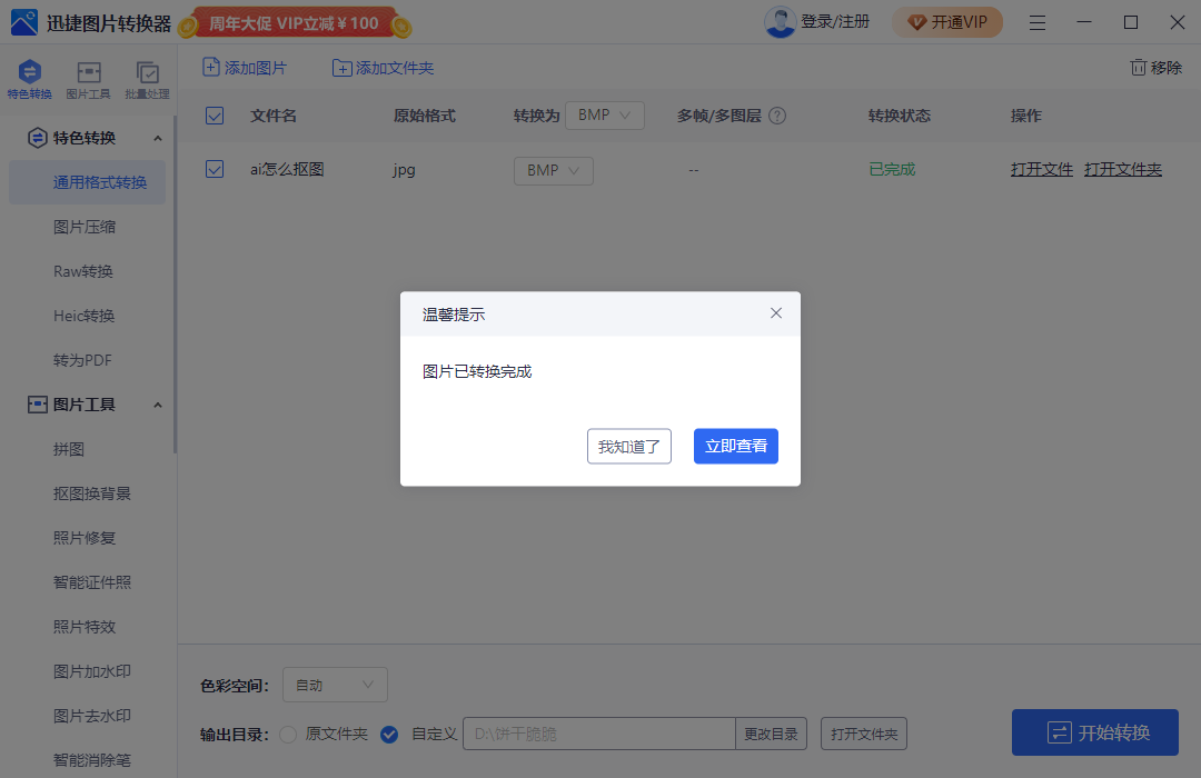 将图片文件的输出格式设置为bmp格式,再点击转换按钮开始进行转换,转换成功后可以点击查看转换后的图片文件。