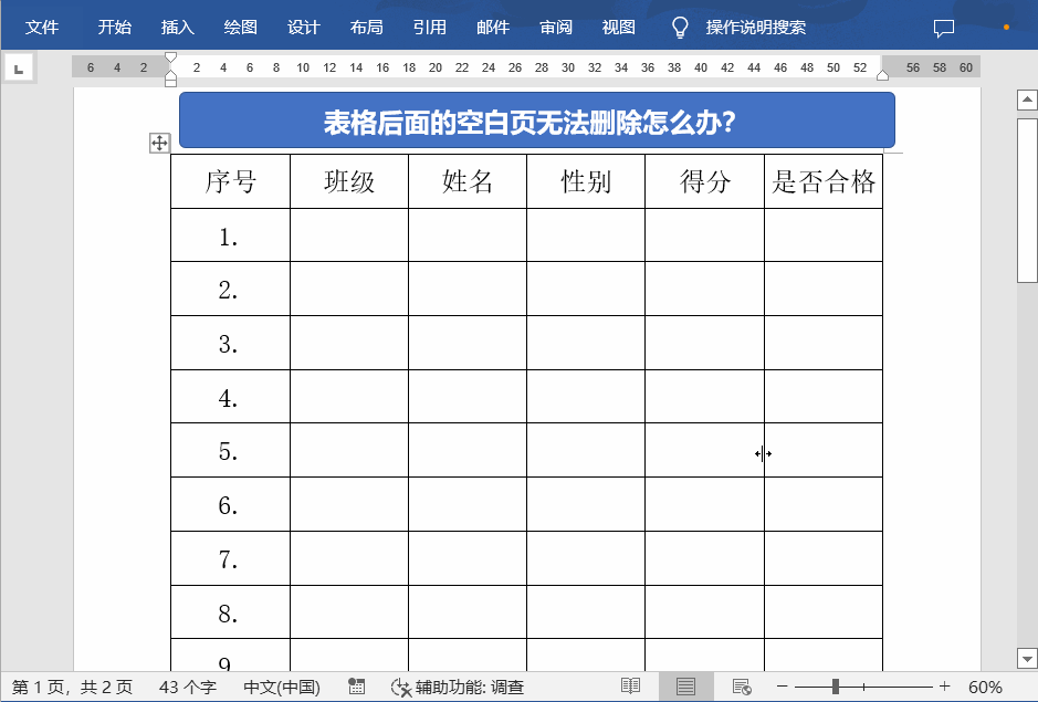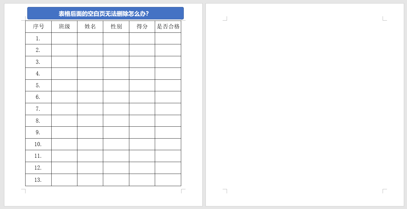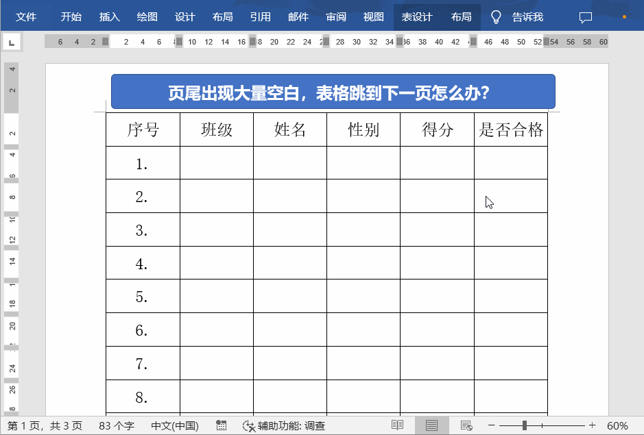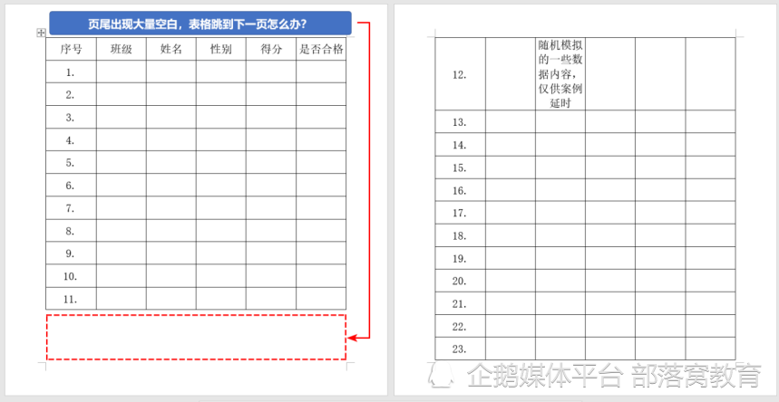 问题2:页尾出现大量空白,表格跳到下一页怎么办?