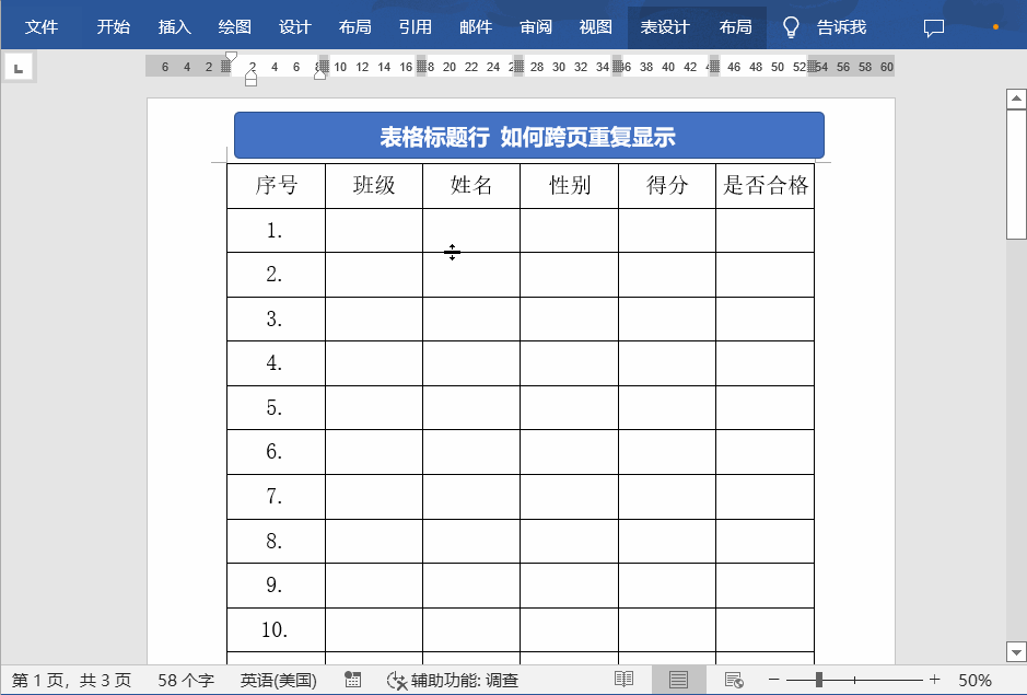 答:选中表格标题行,在布局选项卡中选择数据下拉列表中的“重复标题行”即可。