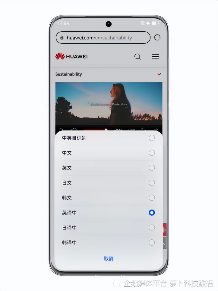 在观看没有字幕的视频时,只需长按华为手机电源键唤醒小艺,然后说出“打开AI字幕”,华为手机就会识别视频上的声音并且生成字幕,让听障人士也能轻松了解视频内容。