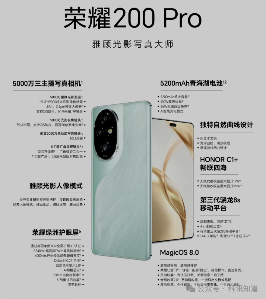 荣耀200 Pro的通信革新:荣耀200 Pro搭载了荣耀自研的射频增强芯片C1+,这一技术的运用,据荣耀官方介绍,可以使信号接收收益最大提升35%,发射收益最大提升17%。这一数据的提升,意味着在相同的网络环境下,荣耀200 Pro能够提供更加稳定和高效的通信体验。
