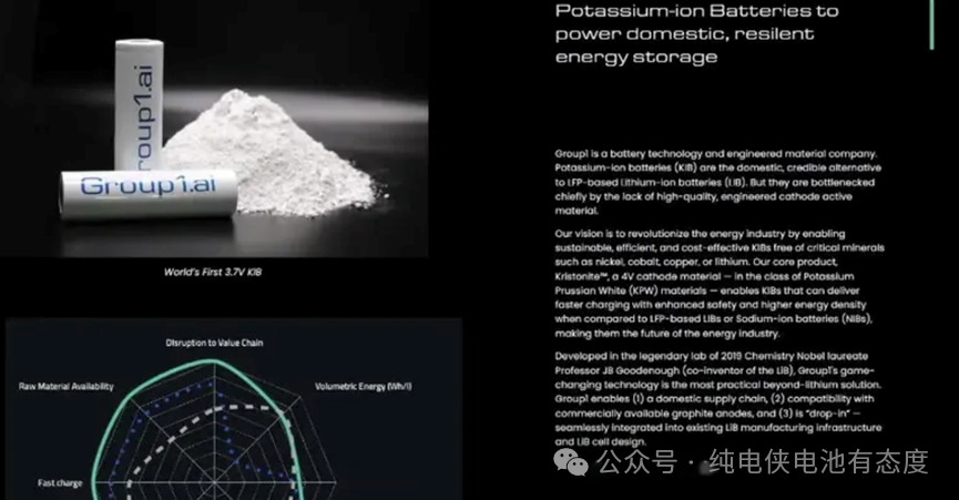 据外媒报道,一家名为Group1的公司宣布推出全球首款采用18650圆柱形外壳的钾离子电池,有望成为传统锂离子电池的平替产品。