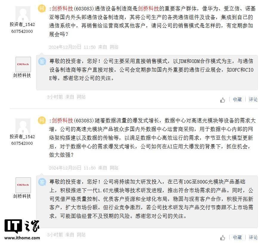 剑桥科技在回应中还提及了公司的销售模式,主要采用直接销售策略,以JDM和ODM合作模式为主导,与通信设备制造商等客户建立直接联系,确保产品的高效推广与应用。
