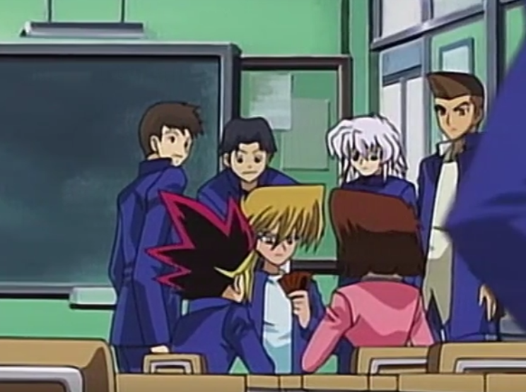 大家好,我是团团圈,今天让我们进入武藤游戏的游戏王卡牌讲解小课堂。众所周知,城之内,杏子,本田等,都是在武藤游戏的带领下学会游戏王卡牌的。所以不经意间,武藤游戏已经把一些技能传授给他们了。现在武藤游戏正在观看他的两个学生对战。