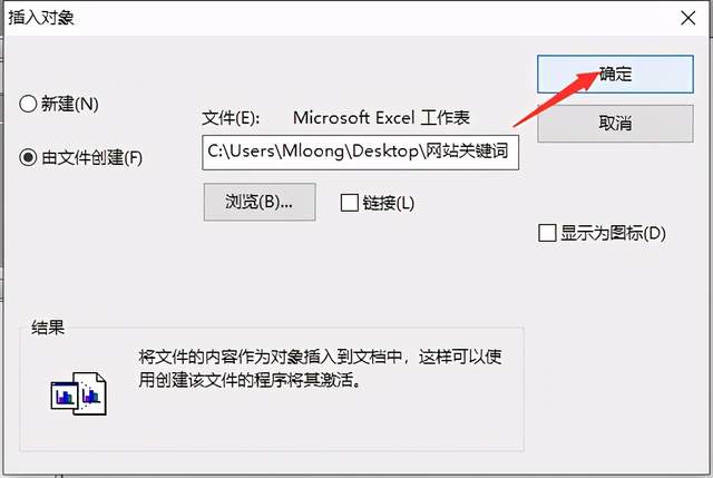 步骤五:将需要嵌入的对象添加完成后,在点击【插入对象】右上方的【确定】按钮即可。