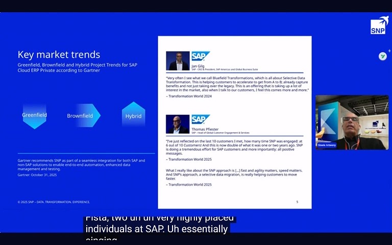 我们相信SNP和delaware能够解决我们的问题--迁移数据并减少数据量,从而在一个项目中将我们的整个系统迁移到SAP S/4HANA。