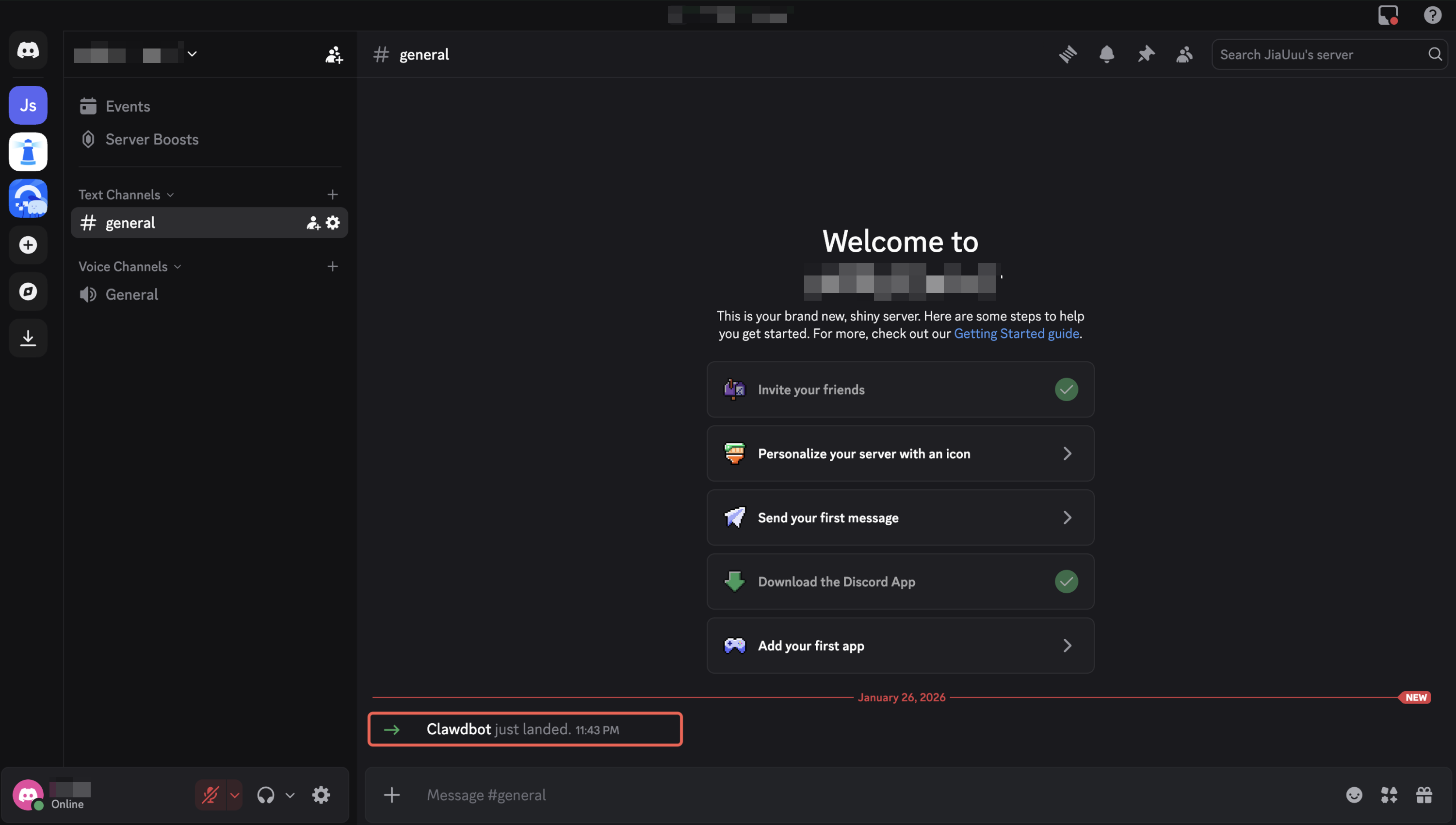9. 配对完成后执行以下命令运行 Gateway,返回 Discord 与 bot 对话,如果正常回复则说明部署成功。