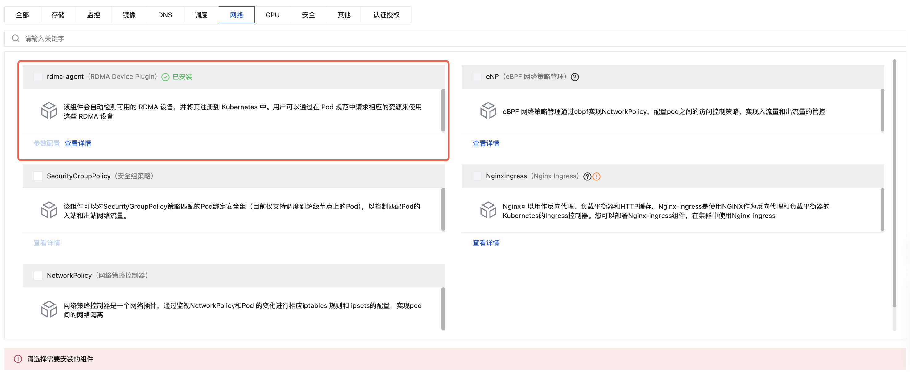 4. 在组件列表中选择 rdma-agent,单击完成。