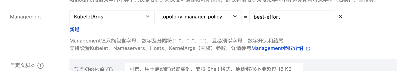 3. 在高级设置中,Management 中添加 Kubelet 的 topology-manager-policy 为 best-effort: