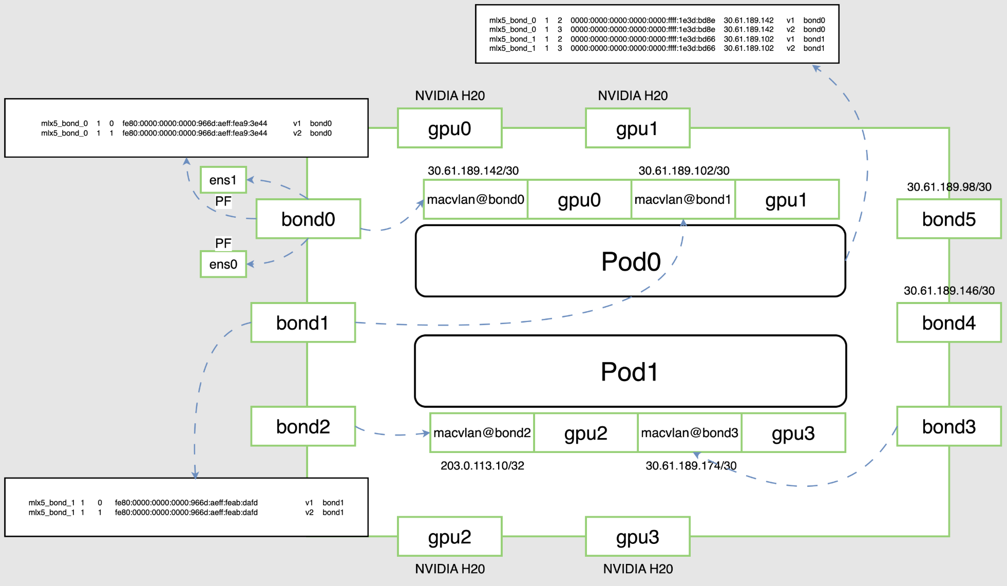 原因:RDMA Pod 启动时会摘除节点上的 bond IP,可能影响 HostNetwork Pod 的网络连通性。