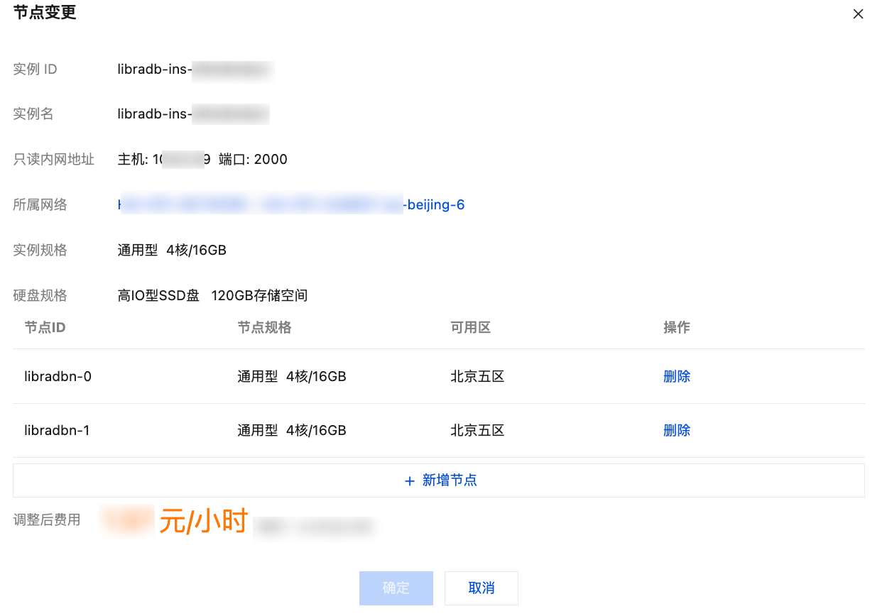 3. 在弹窗下,根据需要新增或删除节点,确认费用后单击确定。