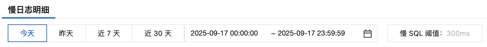 在慢日志明细列表下,默认展示当天所产生的所有慢 SQL 信息。慢日志最大保存30天。