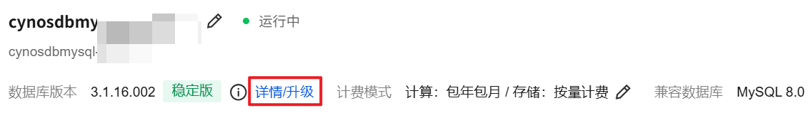 2. 在集群管理页,数据库版本后,单击详情/升级。