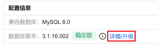2. 在集群详情页的配置信息 > 数据库版本后,单击详情/升级。