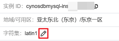 3. 在实例详情页的字符集处,单击修改图标。