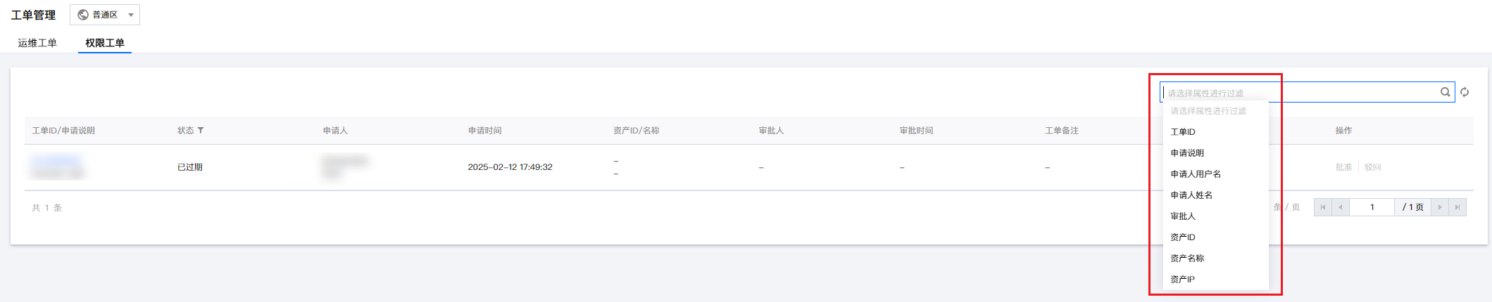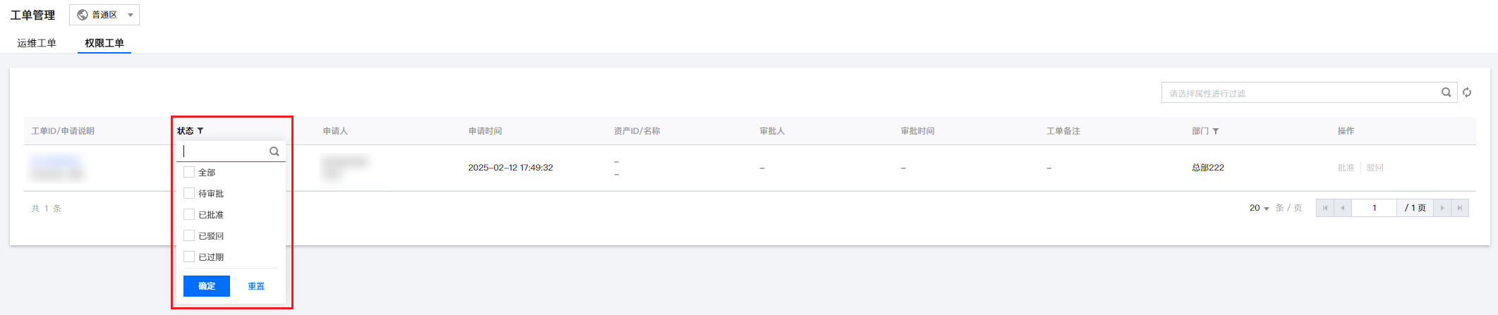 在权限工单页面,您可通过以下两种方式筛选工单,快速定位目标工单、减少无效查找,显著提升工单处理效率。