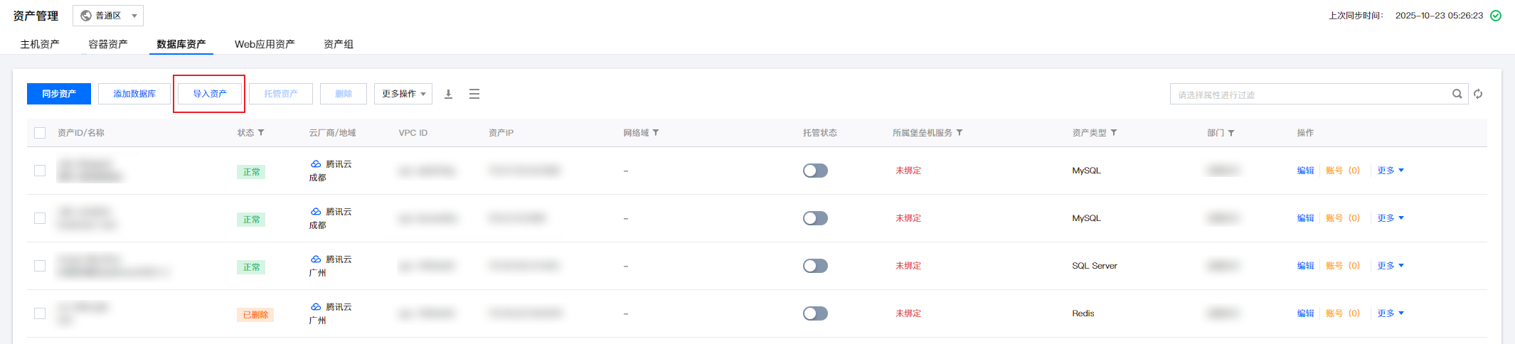 导入方式 | | 导入云数据库:通过云资产账户,拉取云厂商云数据库资产 |