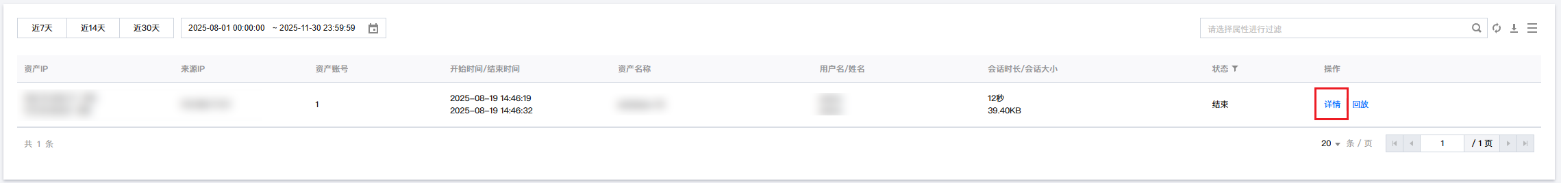4. 在图形会话页面,单击对应会话右侧的详情,可打开会话详情页面。