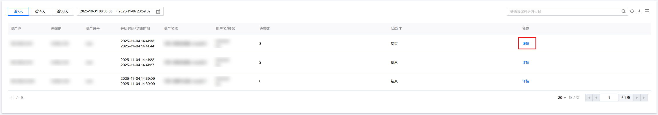 4. 在数据库会话列表,单击对应会话右侧的详情,可查看会话详情。