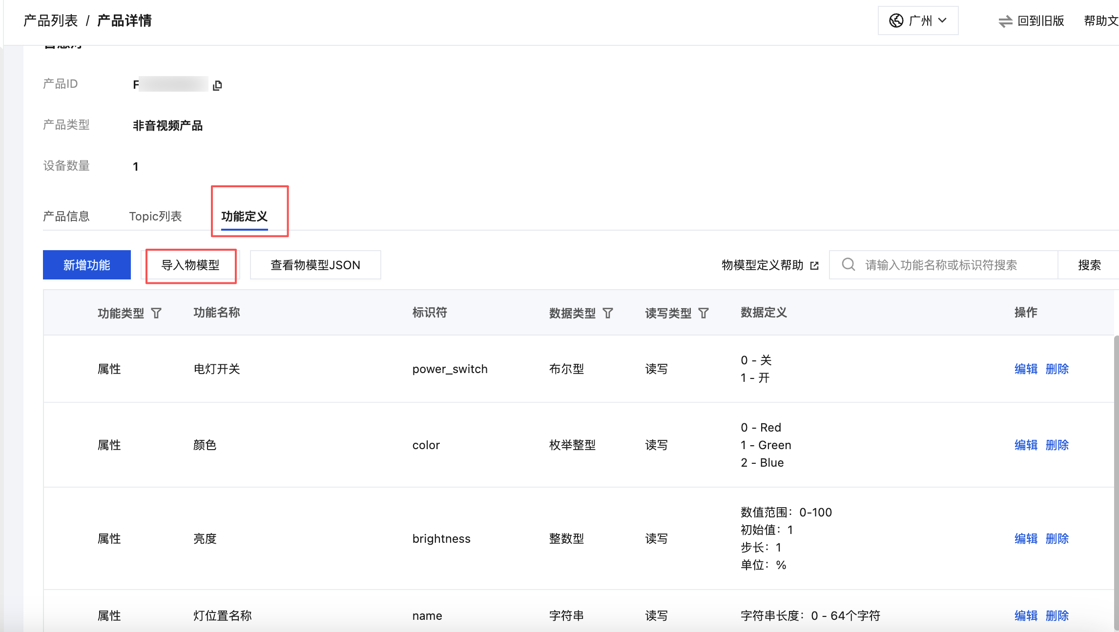 定义产品物模型