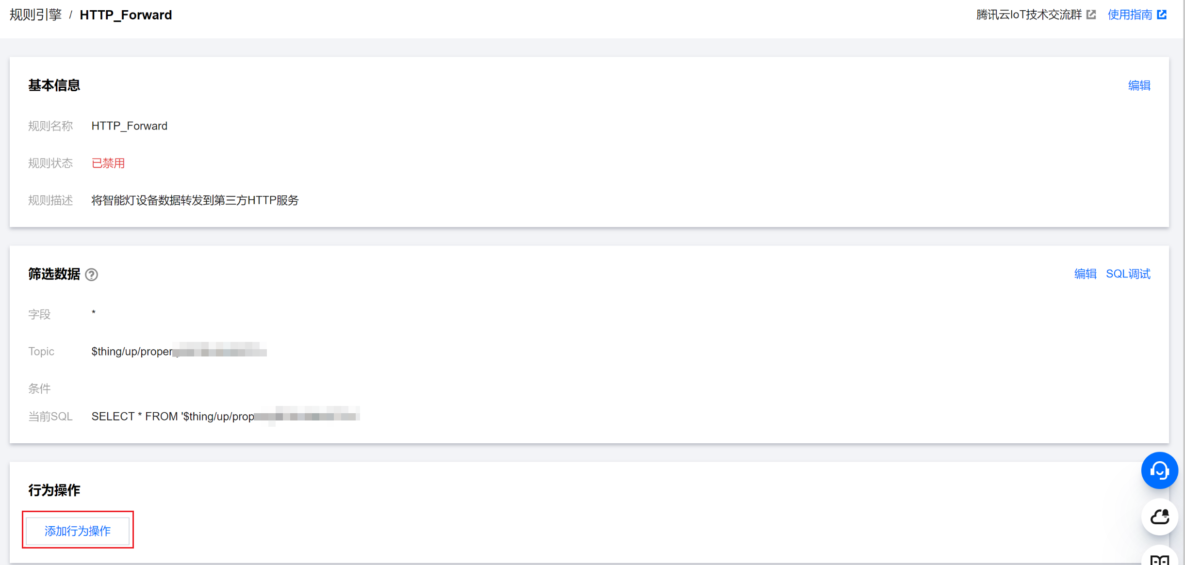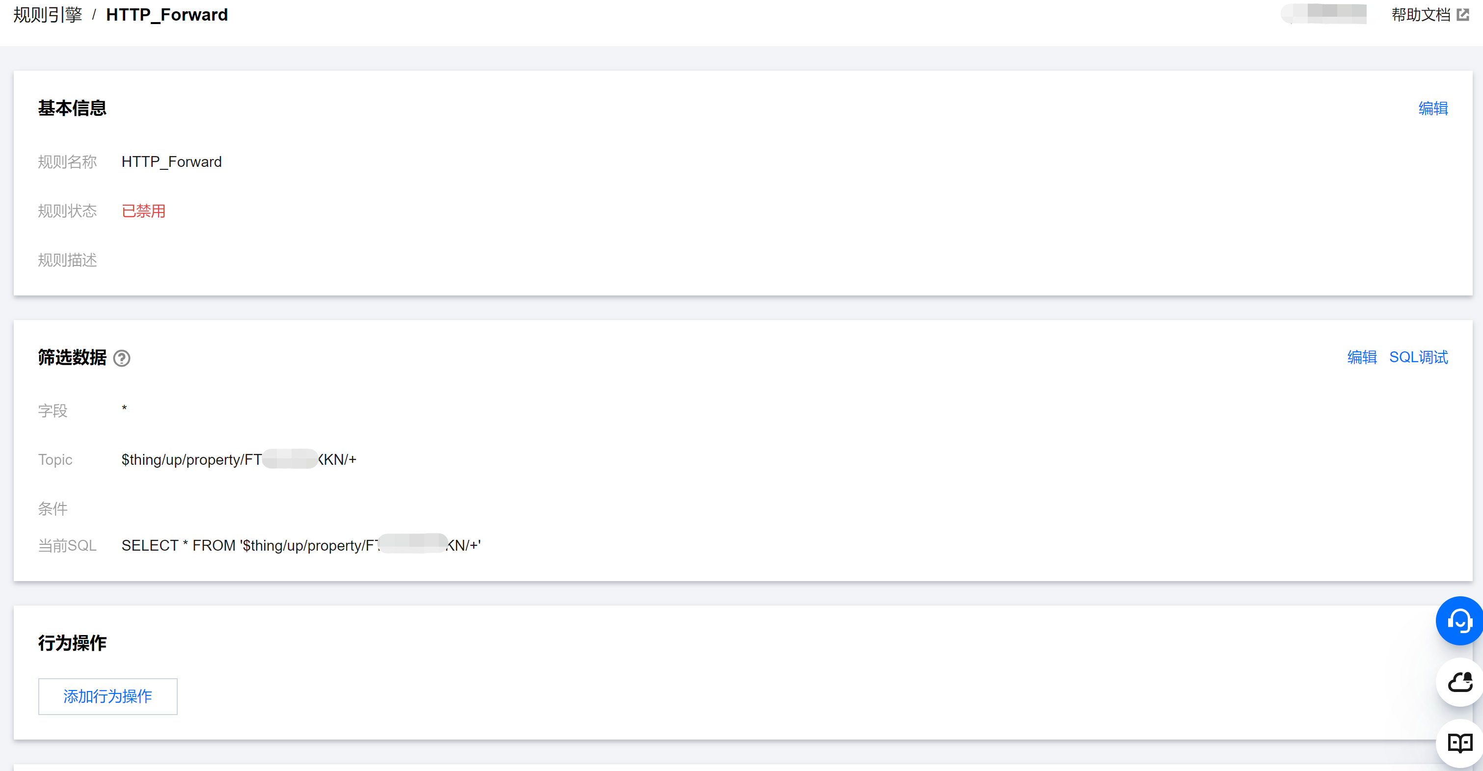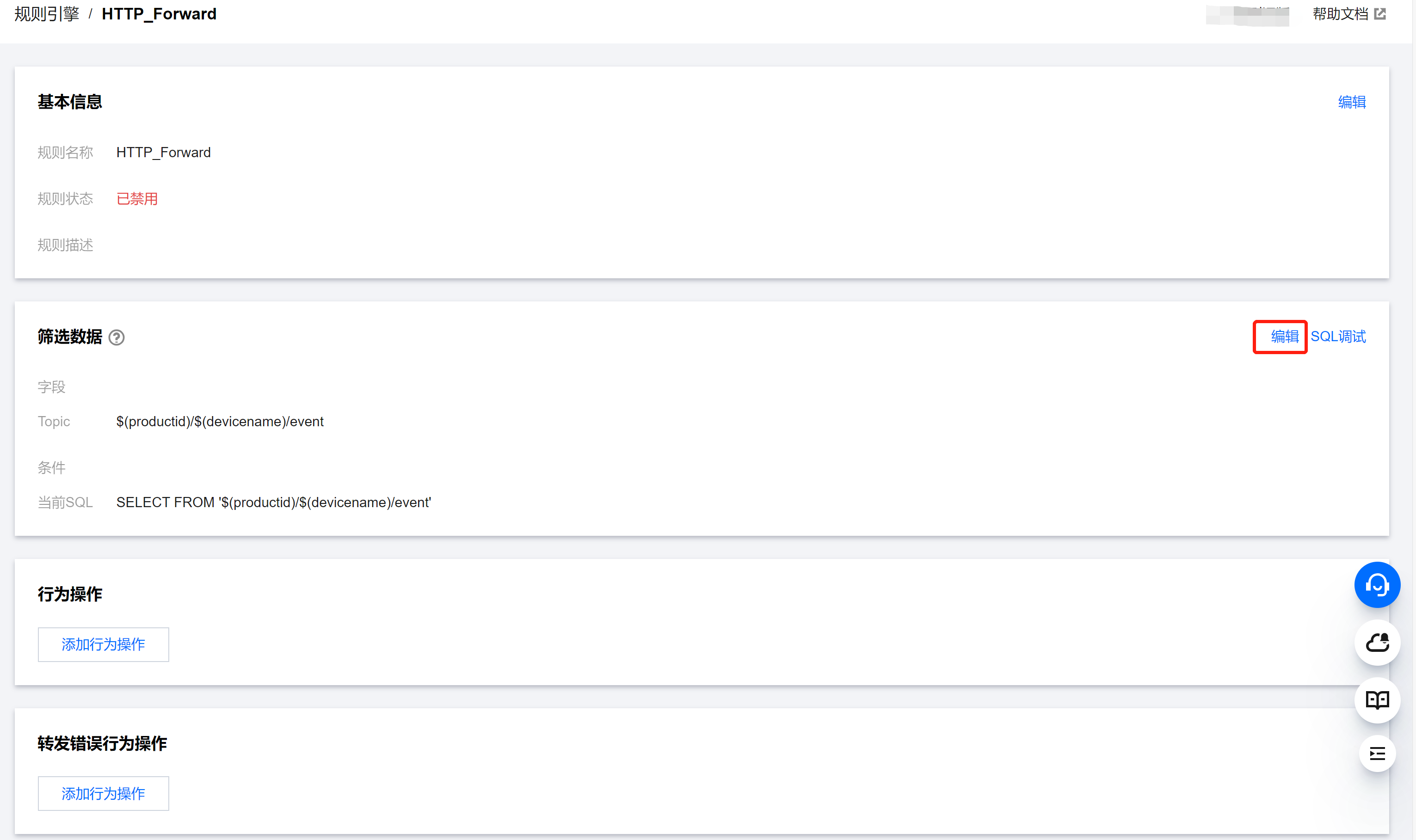 1. 在规则引擎列表选择刚创建成功的规则 HTTP_Forward,单击规则名称或操作列的管理链接,进入规则引擎配置页面。