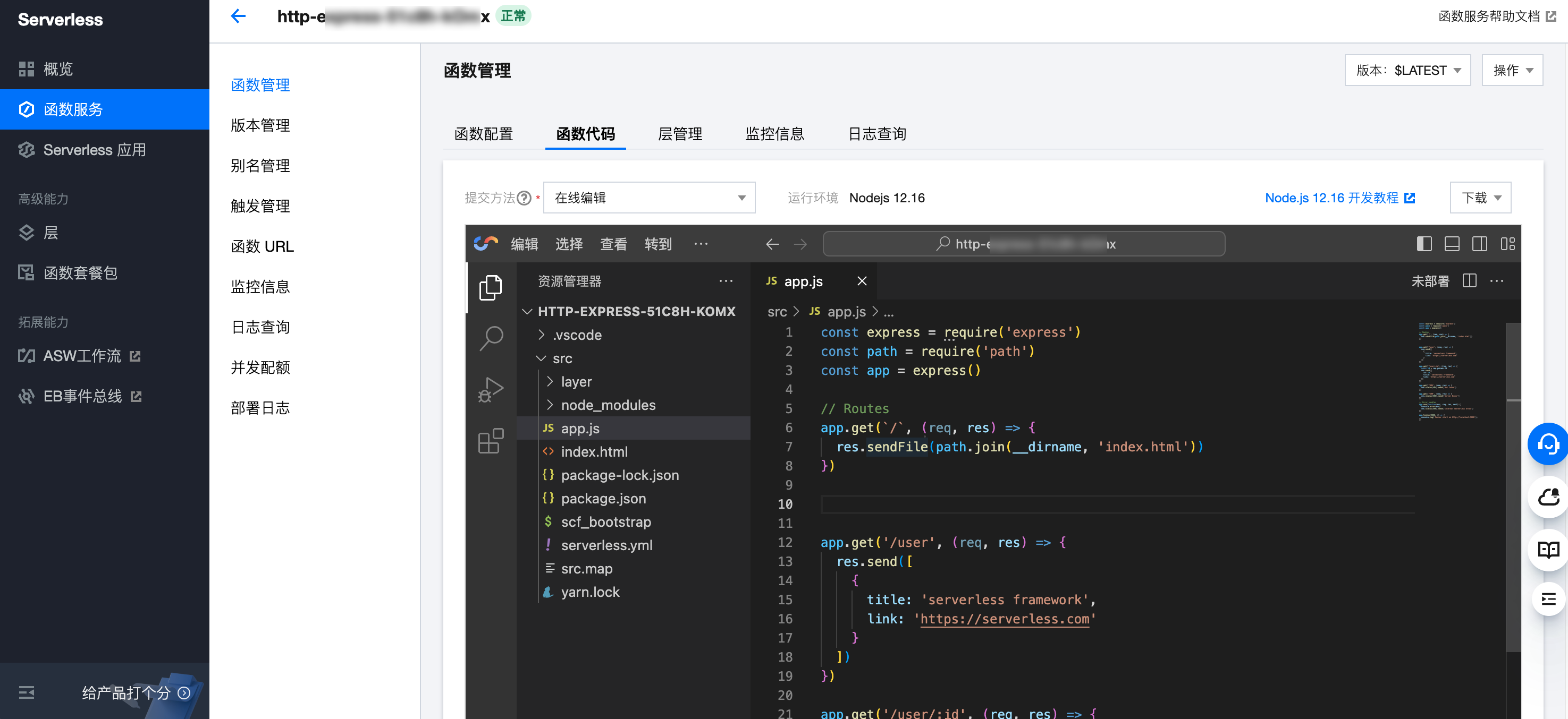 在 SCF 平台基于 Express 快速搭建 Node 服务示例