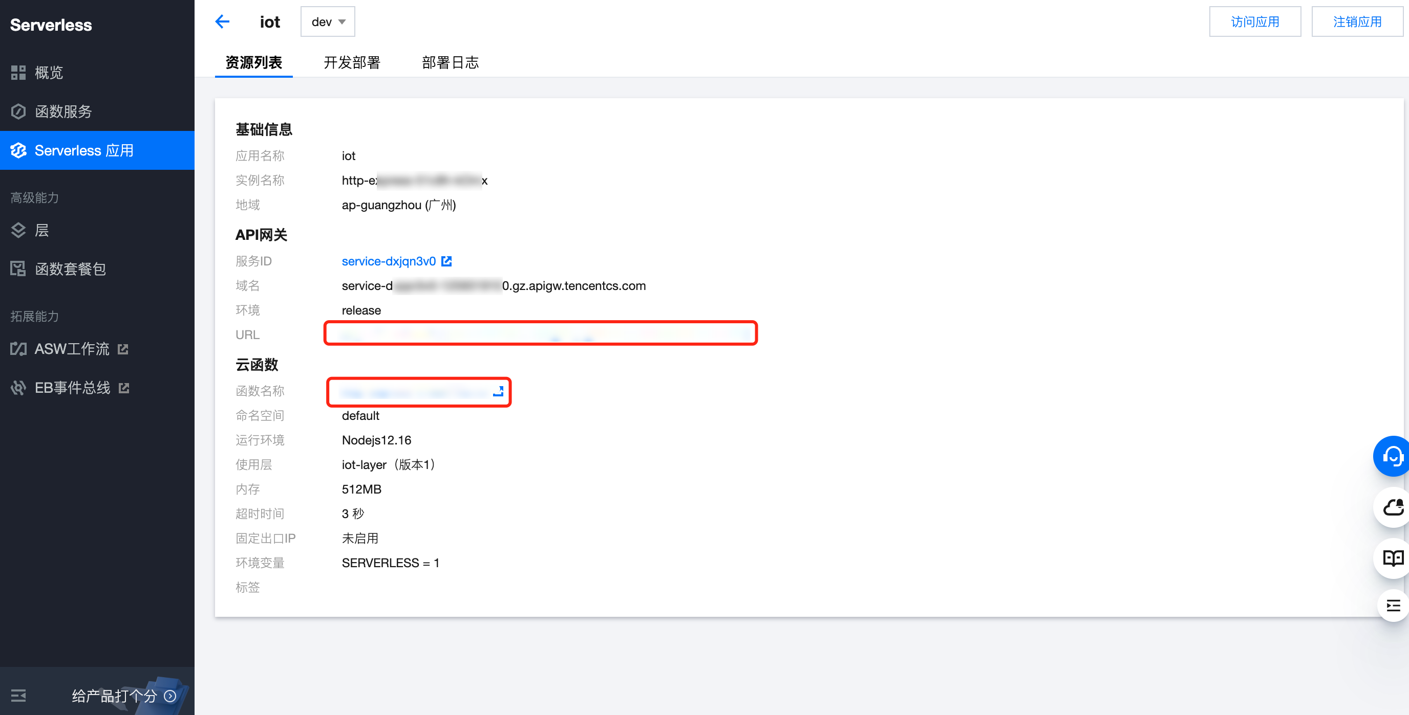 等待部署完成后进入应用,在 API 网关中可以看到 URL