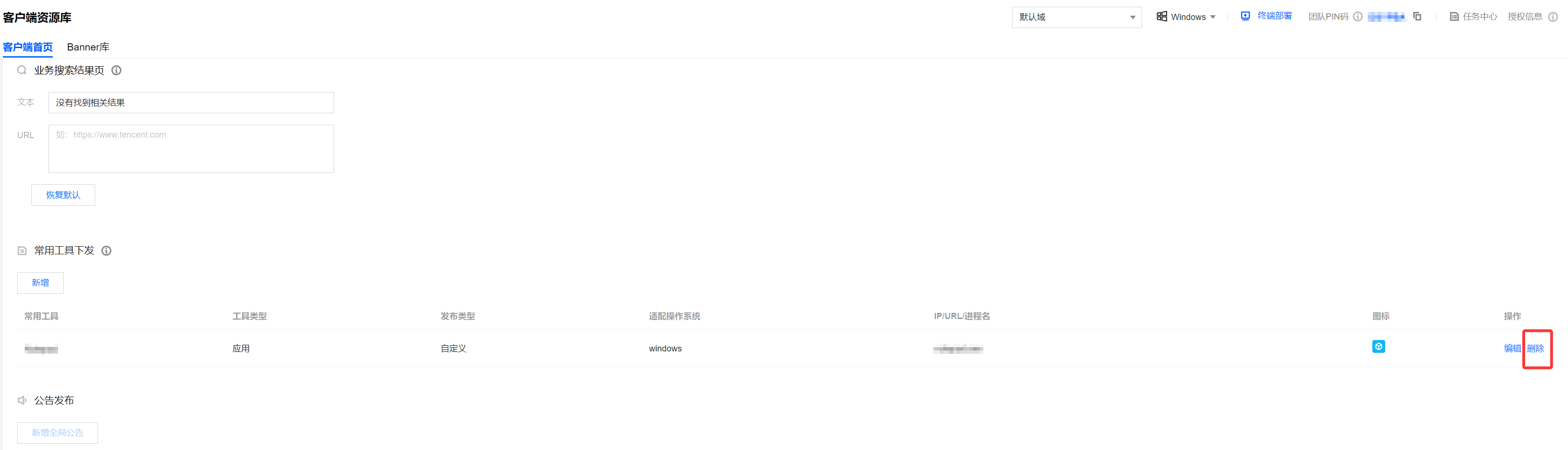7. 若需删除 iOA 客户端不常用的常用工具,可前往个性化设置 > 客户端首页,在配置常用工具下发处,选择不常用的常用工具,单击删除即可。