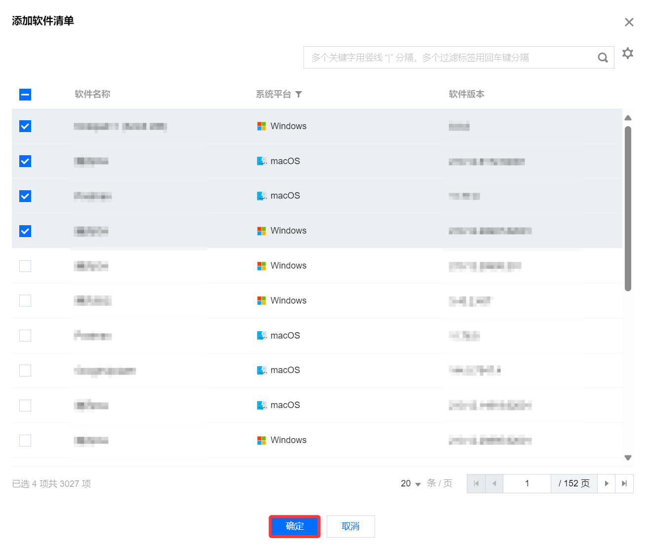 5. 在添加软件清单弹窗中,勾选需卸载的软件后单击确定保存。