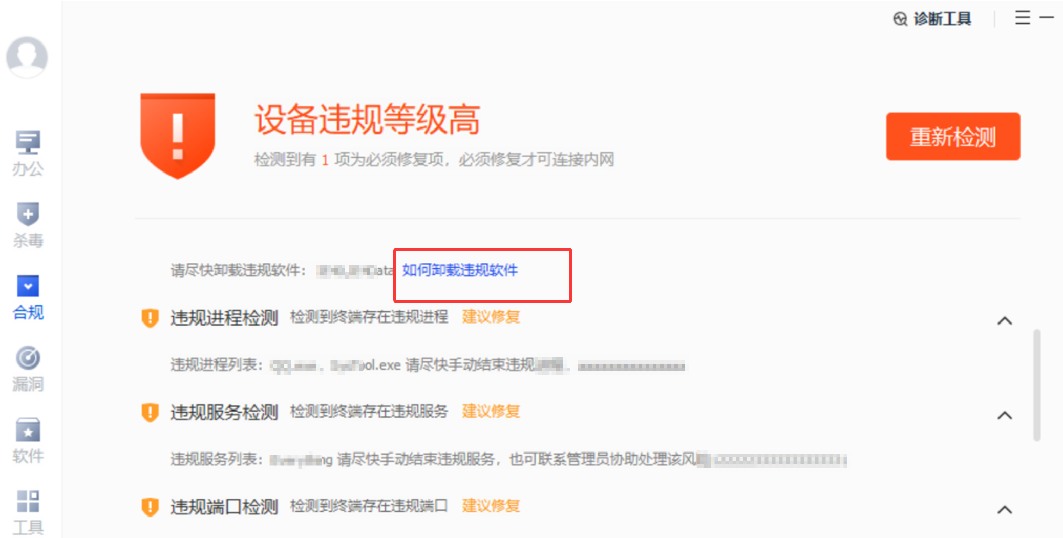 8. 当客户端提示检测不合规时,可引导用户完成修复,提升合规修复效率。