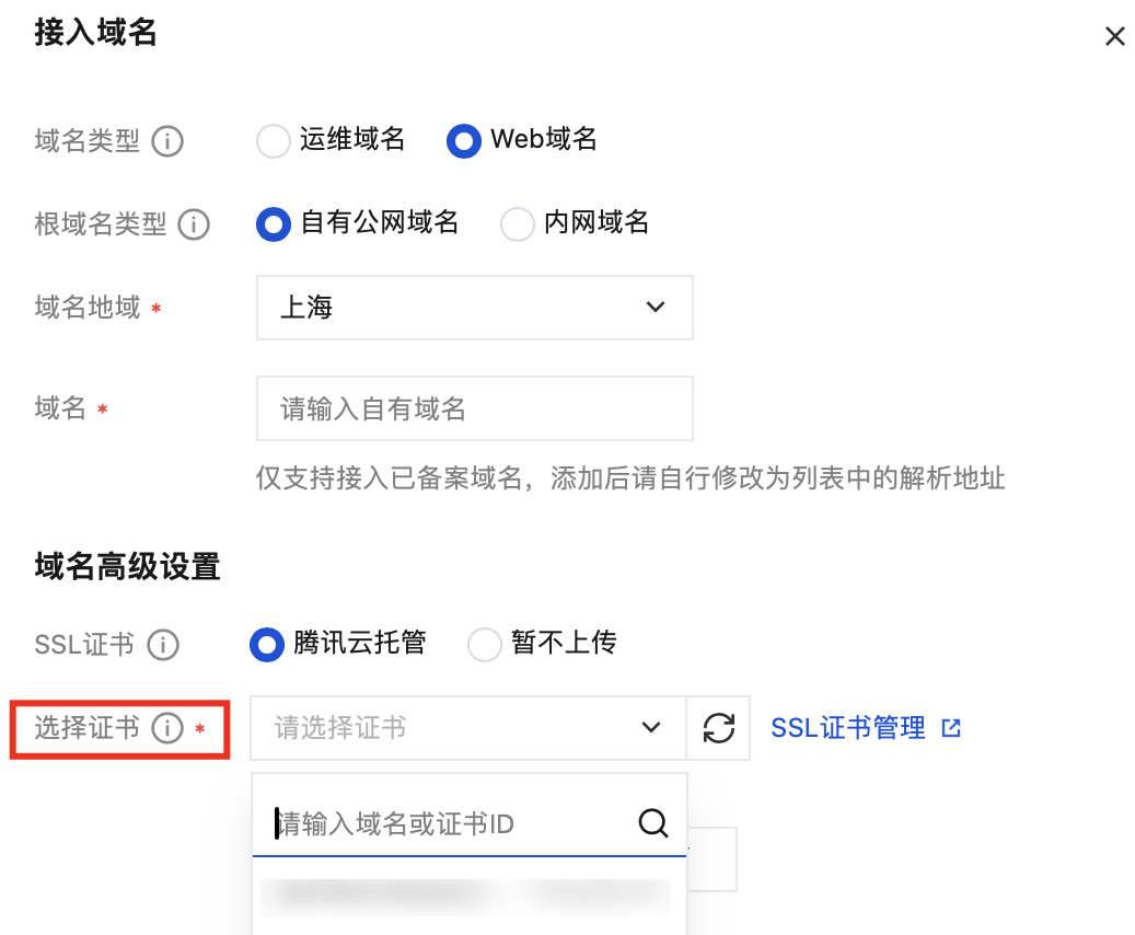 若您需要使用公网 Web 服务的无端运维,请确保关联域名已托管证书,否则将无法接入。