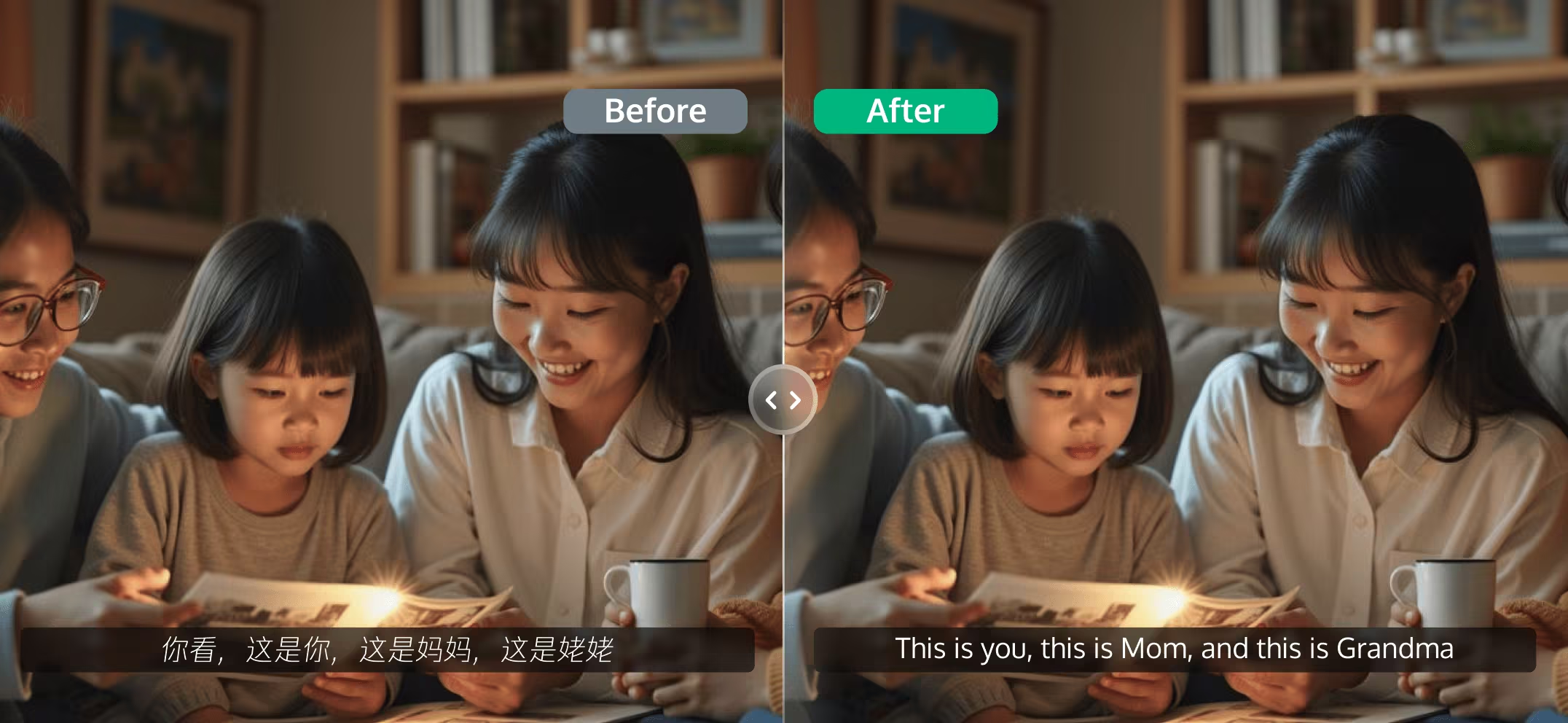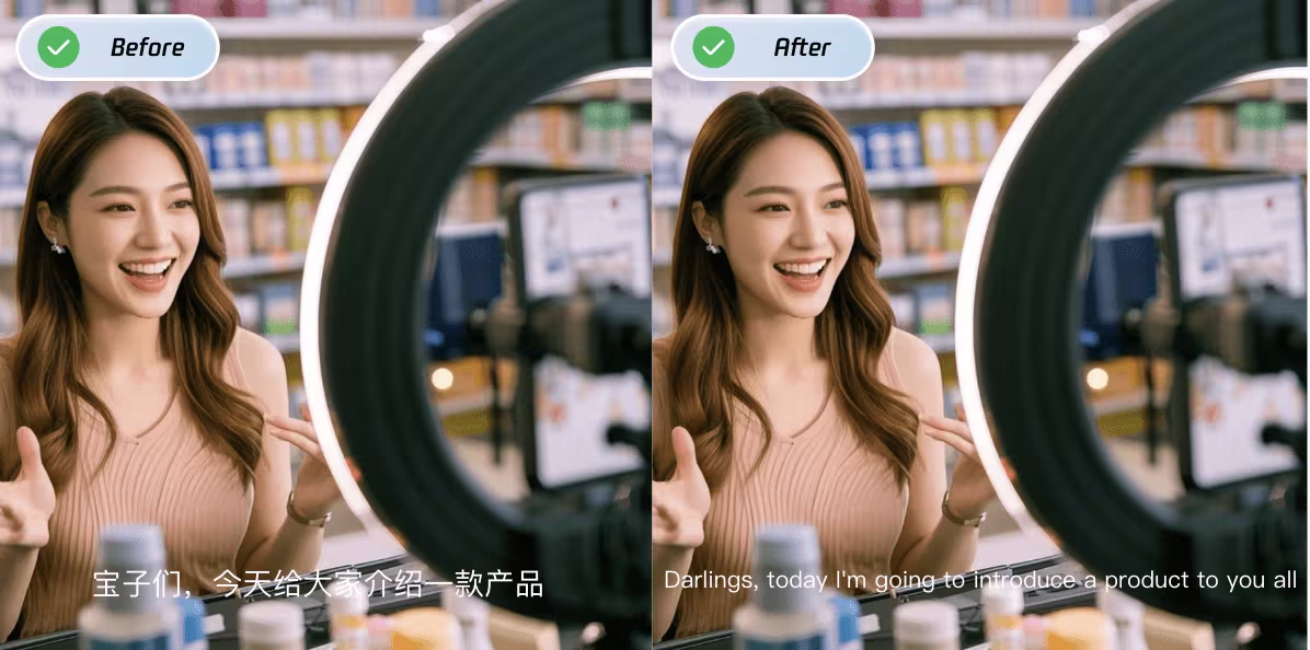 字幕擦除能力,快速精准擦除原视频中的字幕等内容,为后续多语言字幕添加做准备。