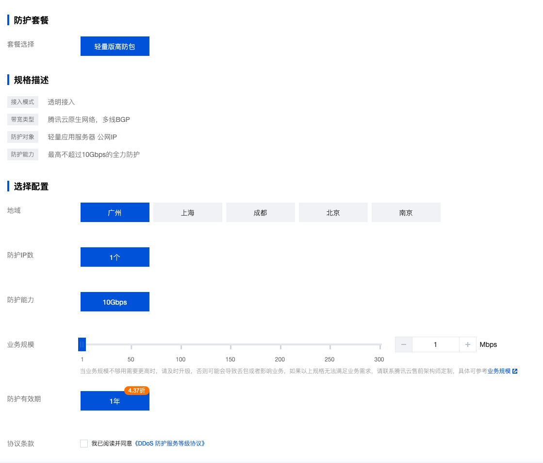 本文为您介绍如何快速创建轻量 DDoS 防护服务。