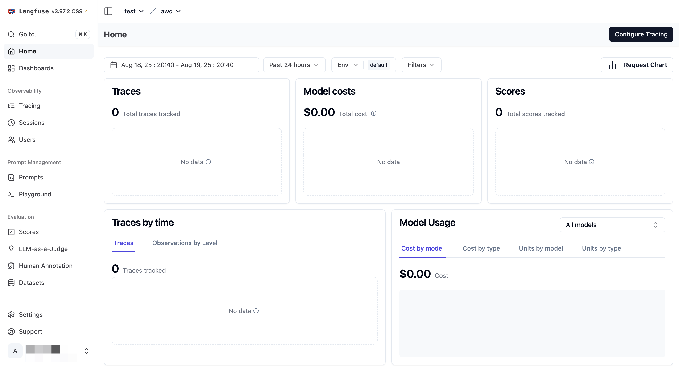 7. 配置完成后即可跳转至 Langfuse 看板界面。