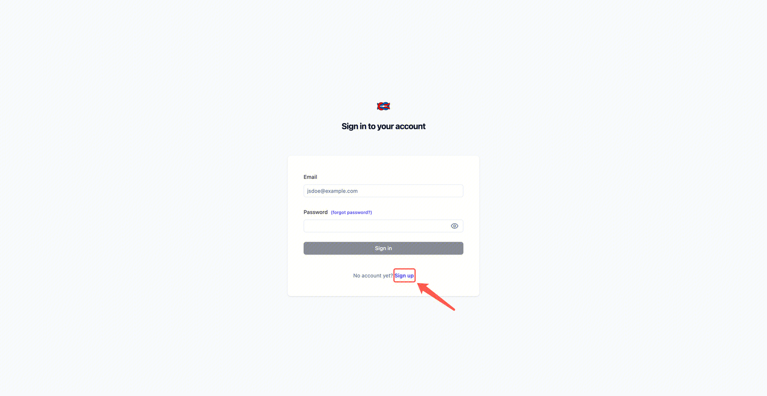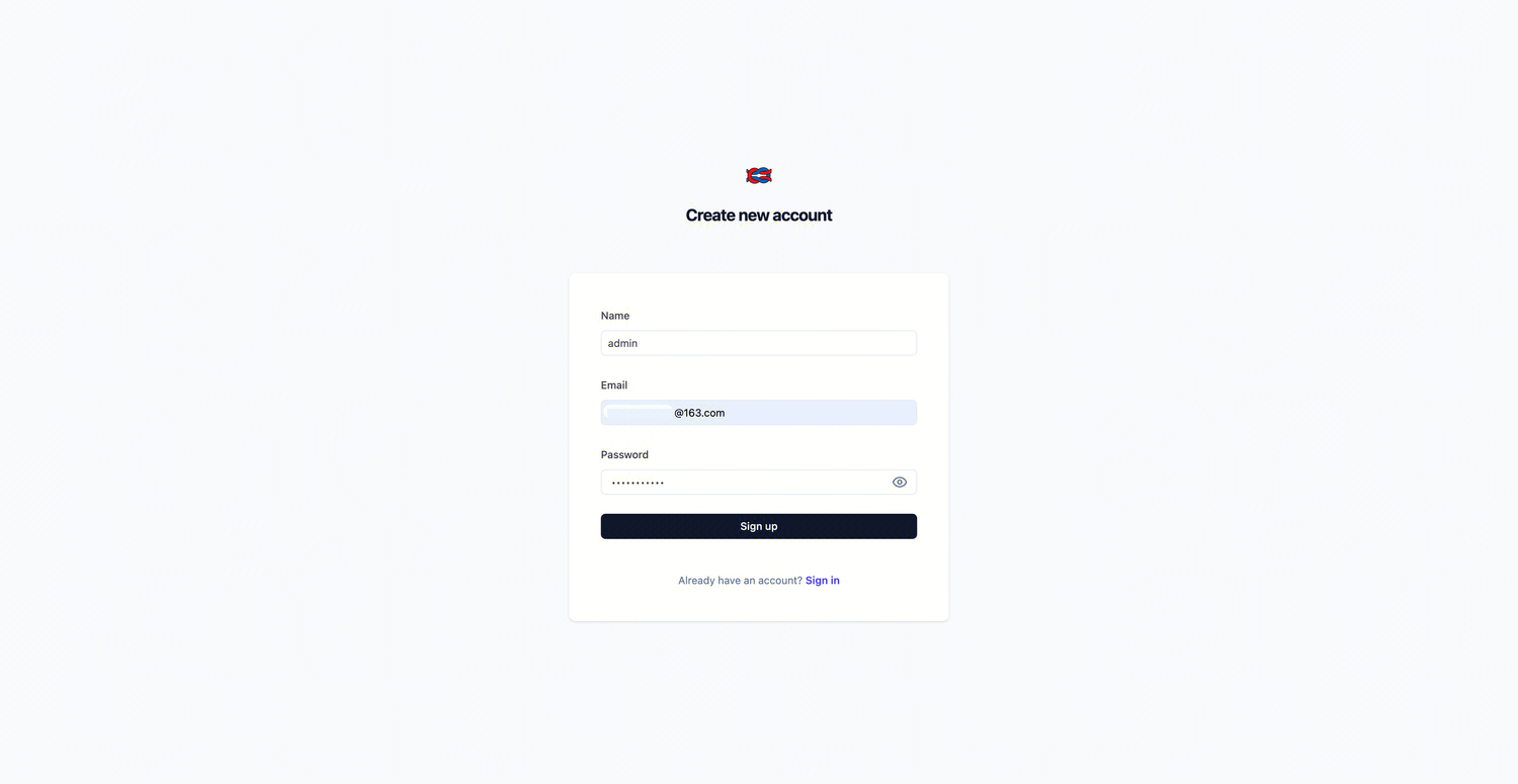 3. 首次访问时,需要您创建第一个管理员账户。单击 Sign up,填写必要信息并进行注册。