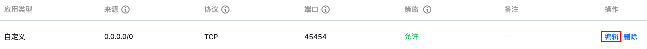 3. 在防火墙规则列表下找到目标防火墙规则,在其操作列单击编辑。