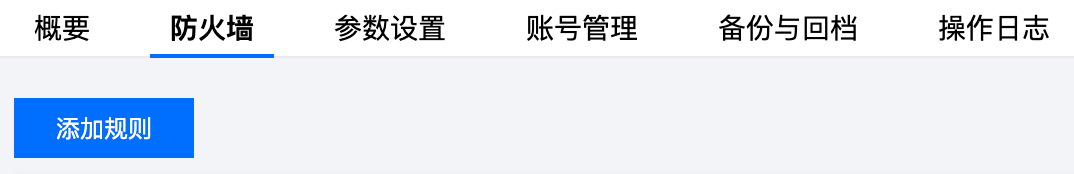 2. 在数据库管理页面,选择防火墙页面,单击添加规则。