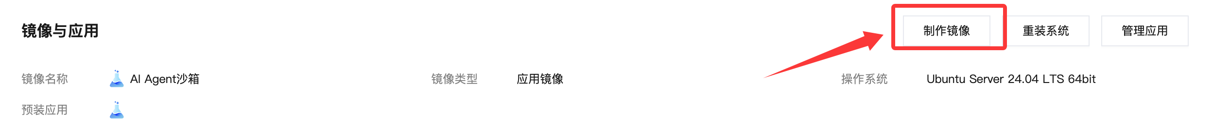 2. 在实例详情页面的应用信息中,选择制作镜像。如下图所示: