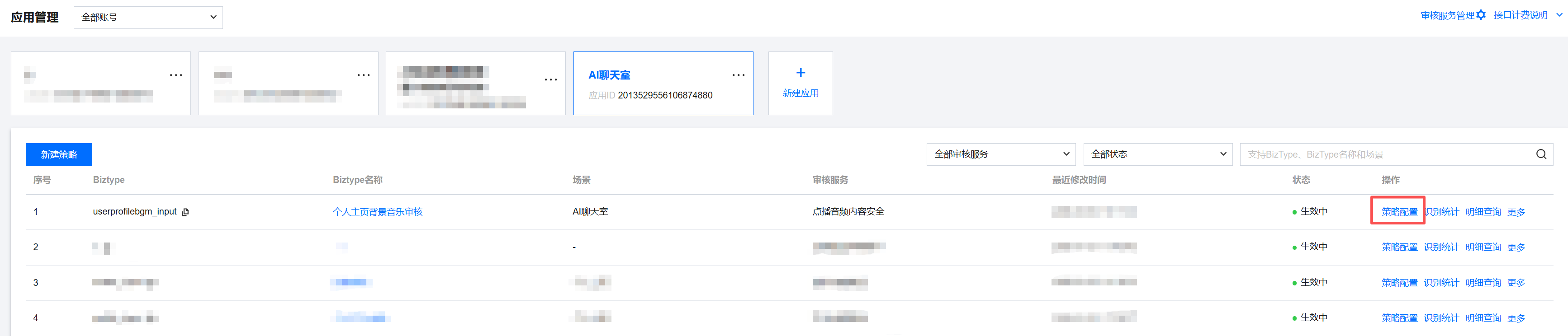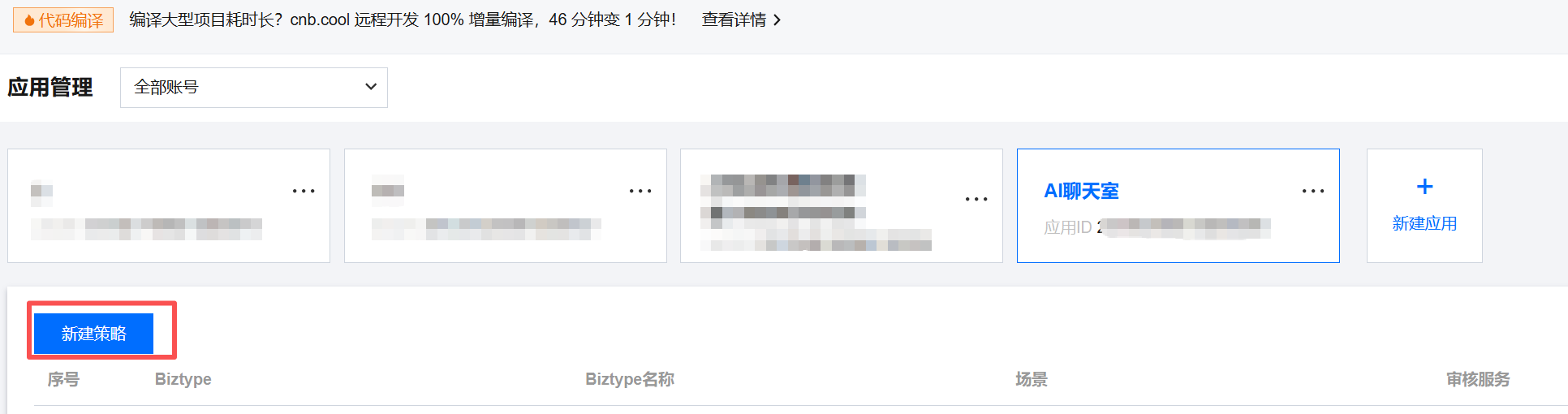 3. 在应用管理页面,单击新建策略。