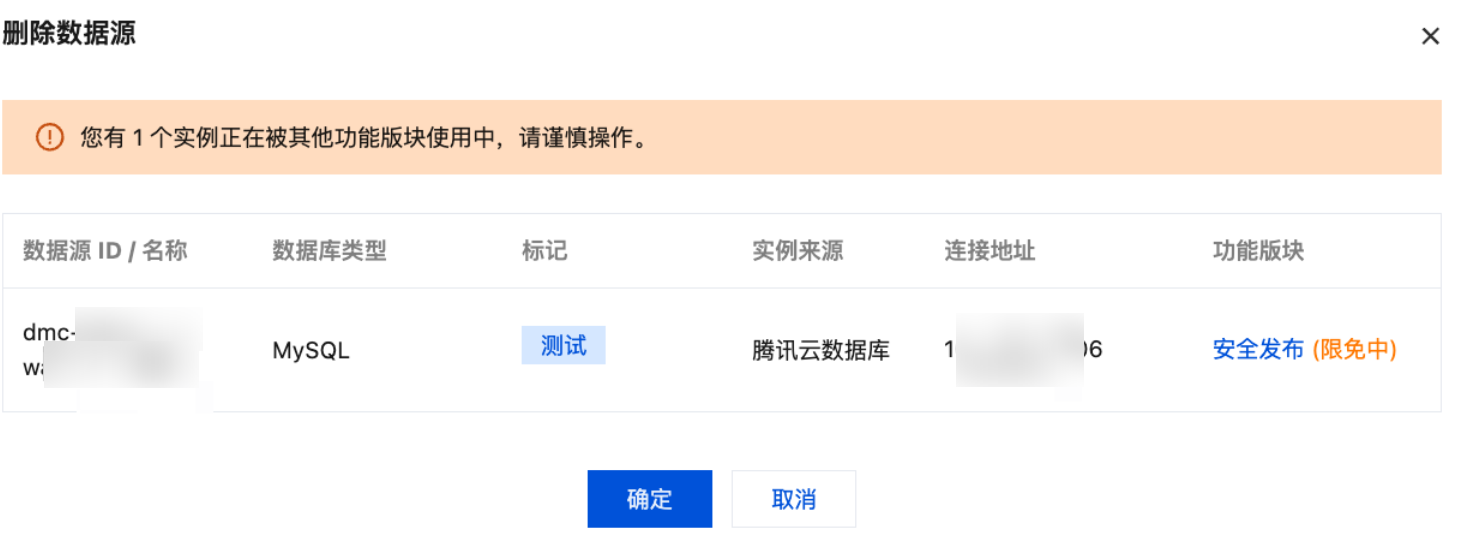操作 | 对源实例开通管控:单击开通管控,具体操作请参见 数据源开通管控。 修改源实例的执行账号:单击更多 > 修改执行账号,具体操作请参见 修改执行账号。 修改数据源的标记:单击更多 > 修改标记,修改完标记后,单击确定。 删除数据源:单击更多 > 删除,具体操作请参见 删除数据源。 |