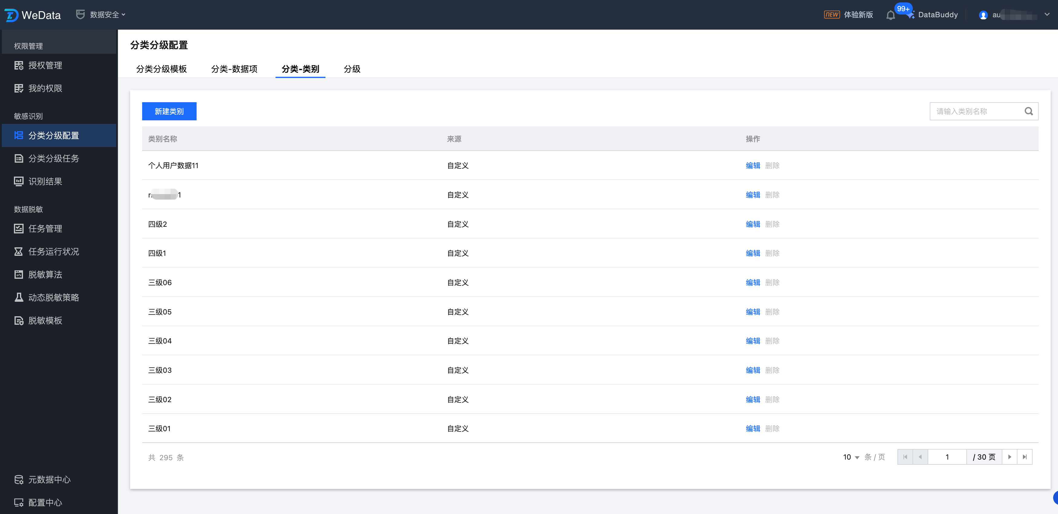 1. 进入分类分级配置 > 分类-类别页面,单击新建类别。