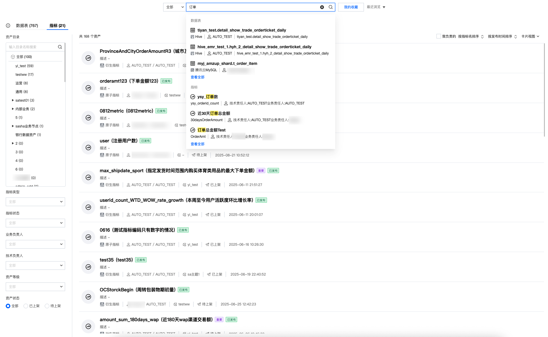 1. 进入数据治理 > 数据资产 > 数据发现 > 指标Tab页签