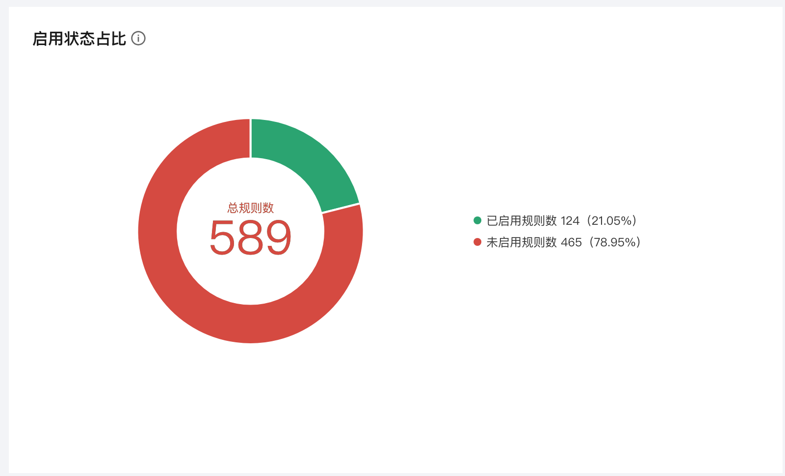鼠标悬停至环形图色块中可展示出启用规则数分布具体数值和占比。