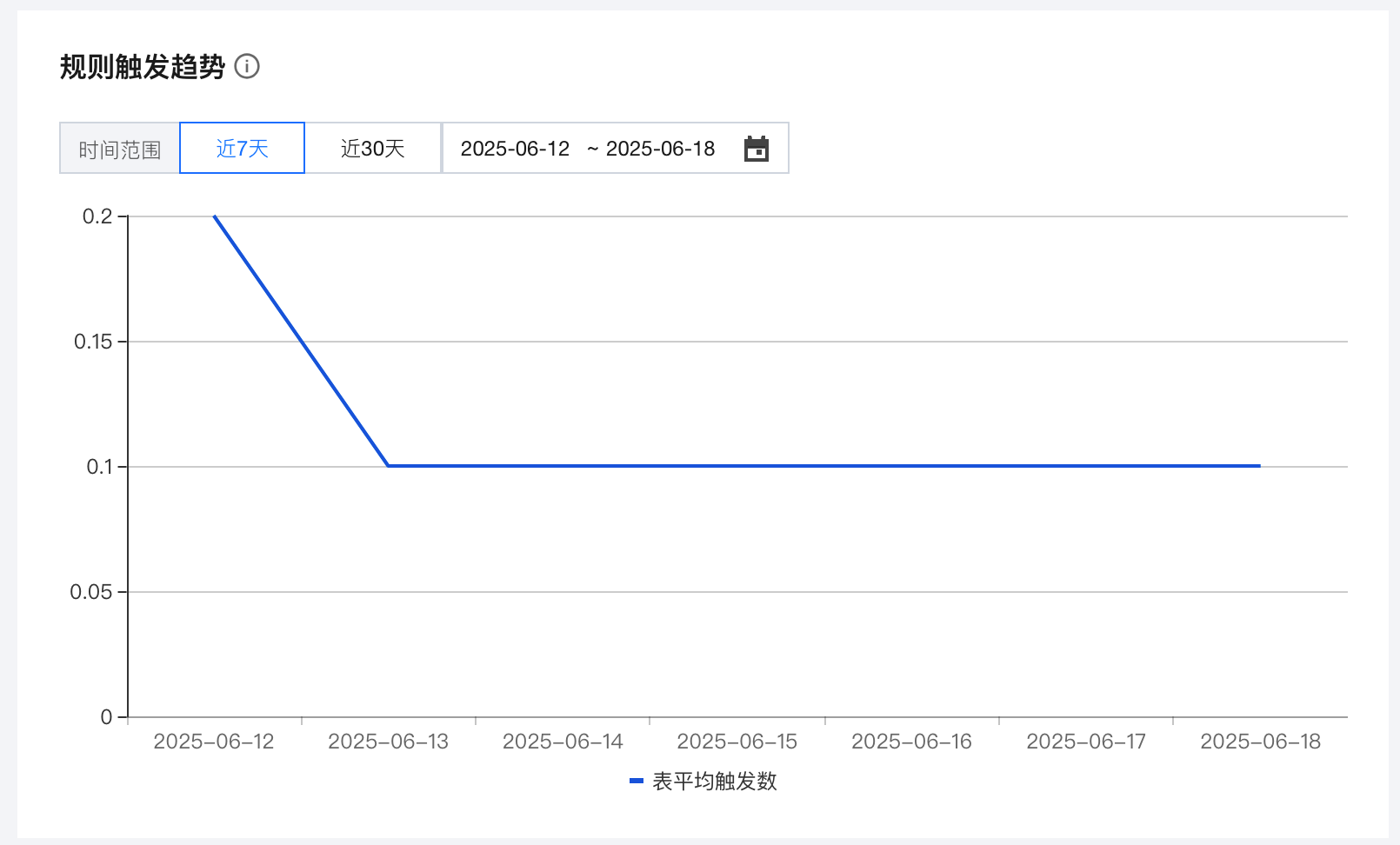 在所选时间范围内,按天为粒度聚合的表平均规则触发数,同时,支持您按照时间区间快速筛选。